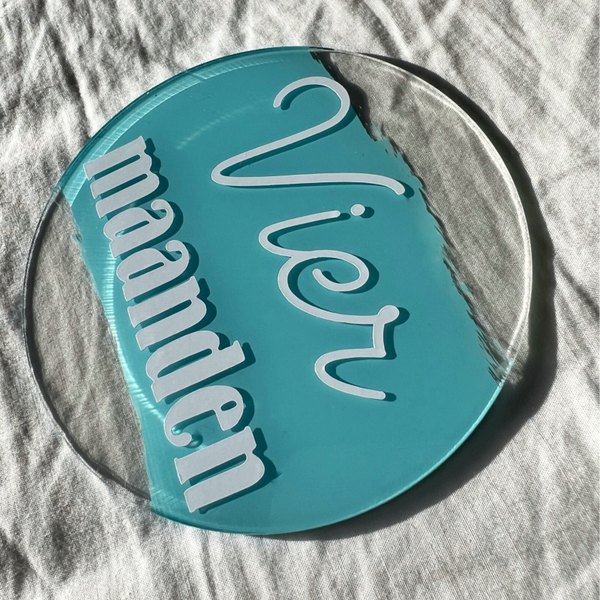Je kunt er ook voor kiezen om een naam plaatje in dezelfde kleur en lettertype toe te voegen. Dan kun je iedereen kennis laten maken met je kindje wanneer hij/zij net geboren is met een prachtige foto.